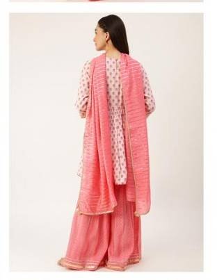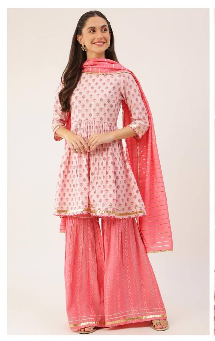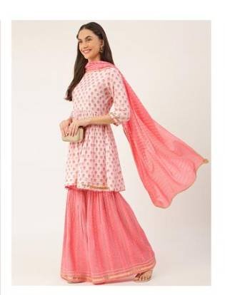 Elevate your ethnic wardrobe Pink Chanderi Kurta Set Graceful sharara Matching dupatta